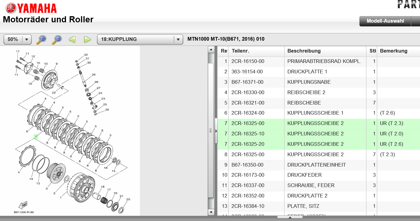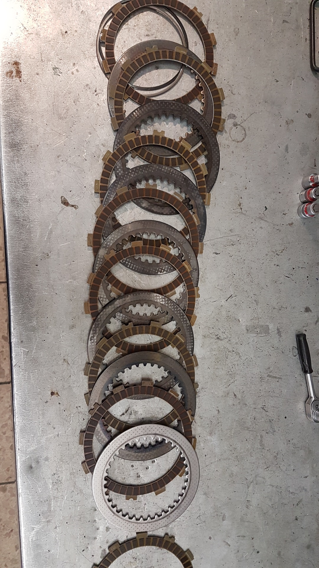 Konkret: Laut Werkstatthandbuch sollte ein Kupplungskorb der MT-10 folgende 9 Stahl-Scheiben enthalten: