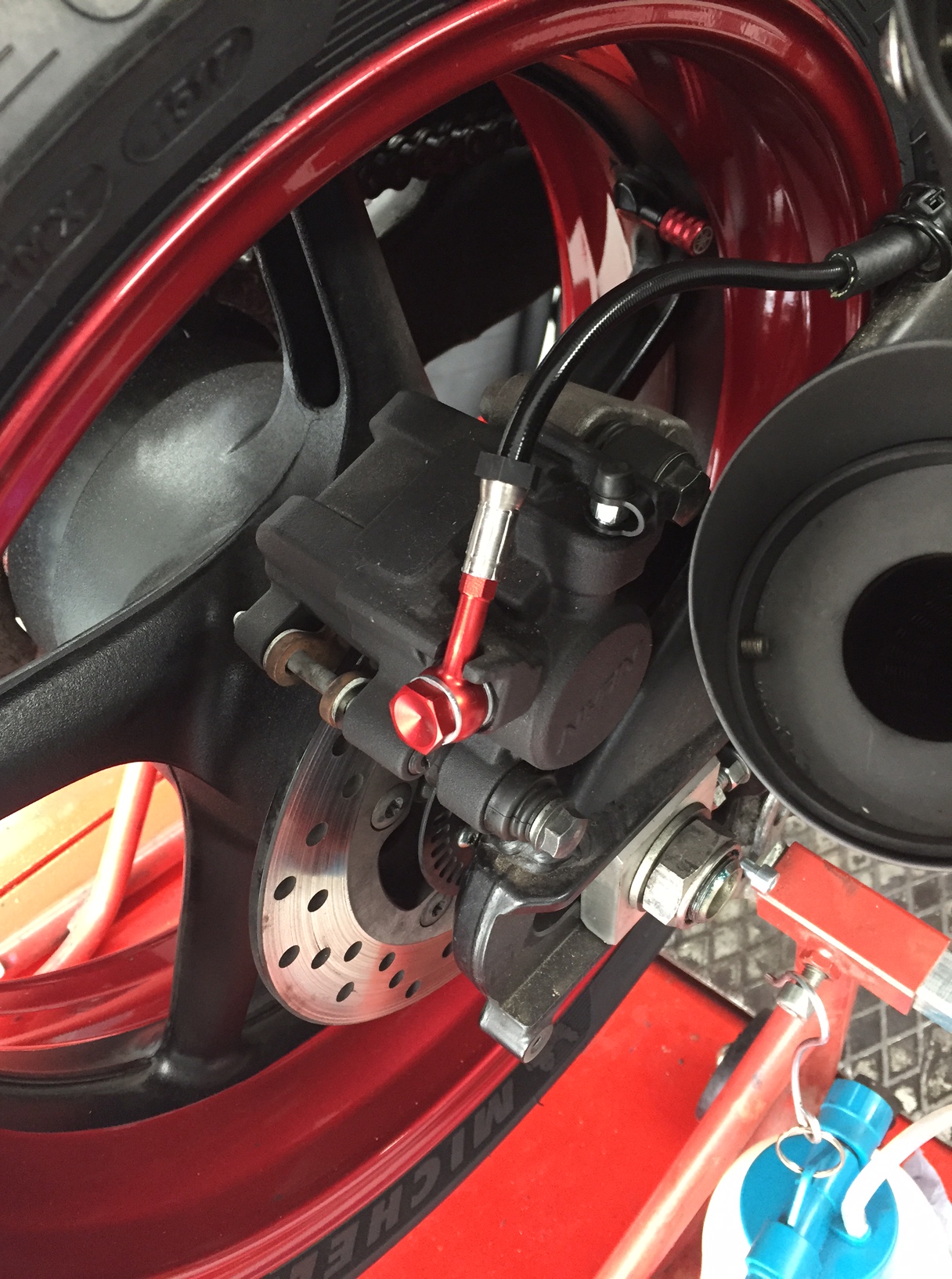 Bestellt hatte ich auch zusätzlich Hohlschrauben in rot, wie ihr auf den Bildern sehen könnt