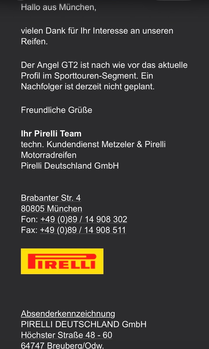 Wenn im Frühjahr nix neues von Pirelli kommt bestelle ich den Rosso4 und schaue mal was der an KM auf der MT10 packt.