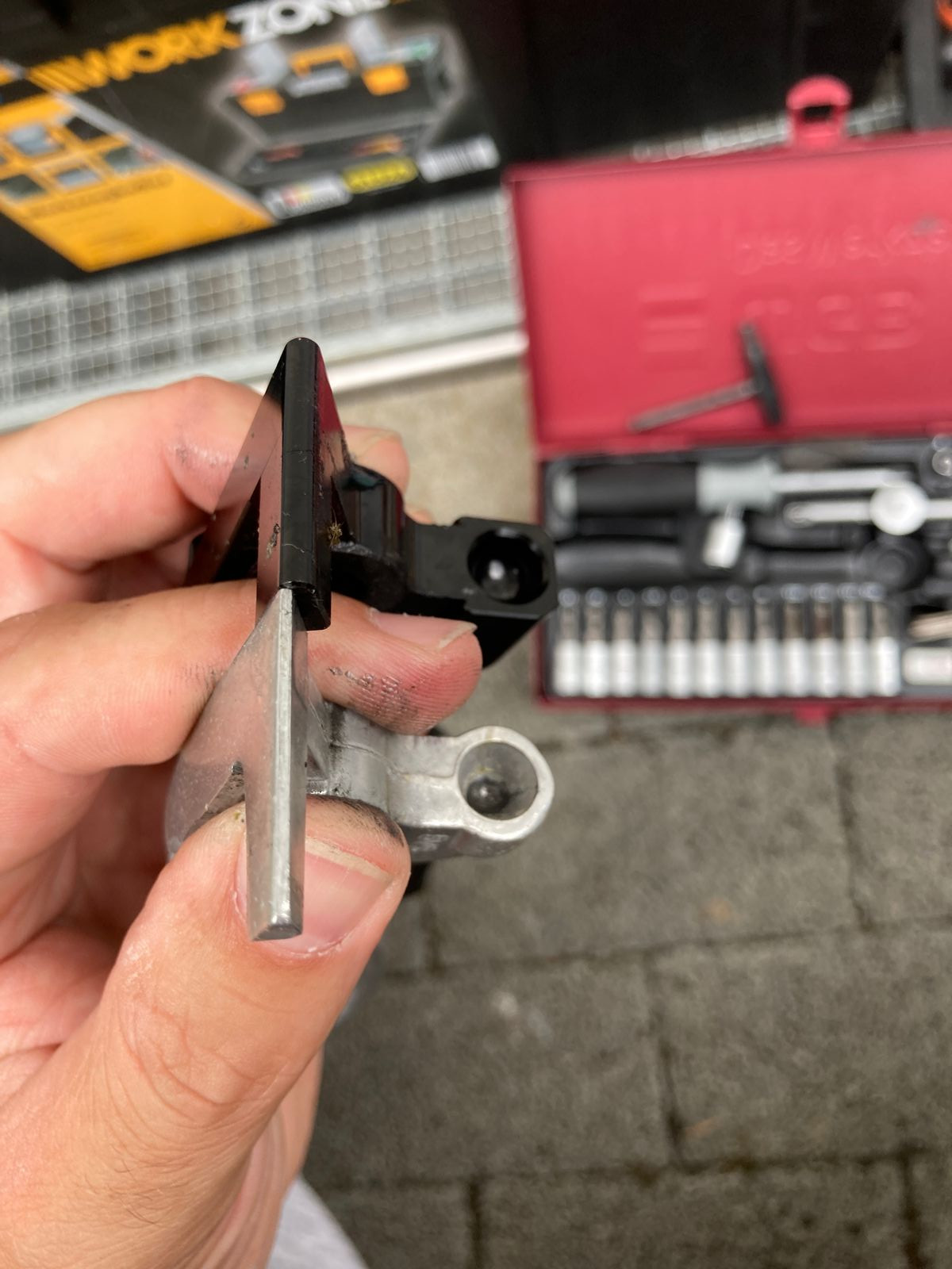 Jetzt habe ich festgestellt das meine Bremslicht zu spät angeht (Dank ordentlichem Lichttest vor langer Tour) zuerst habe ich mir gedacht es liegt an der Rückrufaktion aber bei genauere Analyse heute ist mir aufgefallen das der Schalter zweimal klickt bevor das Licht angeht, erst beim 2. mal geht das Licht an. Also hab ich das mal genauer geprüft und SCHOCKIERT festgestellt das es am Hebel liegt. Der V-Trec Hebel ist am Punkt wo der Schalter sitzt fast 2mm dicker als der Standard.