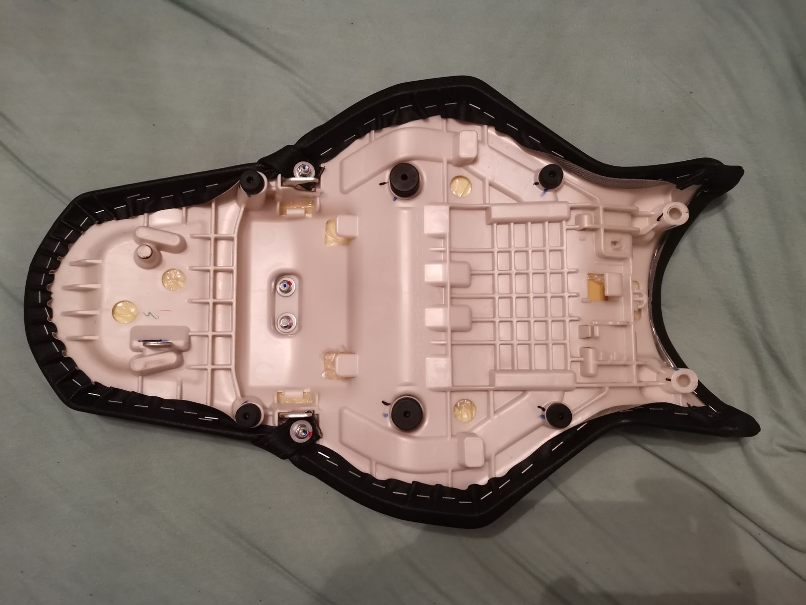 Habe aus meinem Ersatzteil Bestand noch eine Sitzbank abzugeben. Sie ist unbenutzt, hat aber eine winzige Druckstelle (siehe Bilder) von der Kante eines Kartons auf dem sie gelagert wurde. Die Spitzen sind nicht durchgescheuert und der Bezug ist noch top.