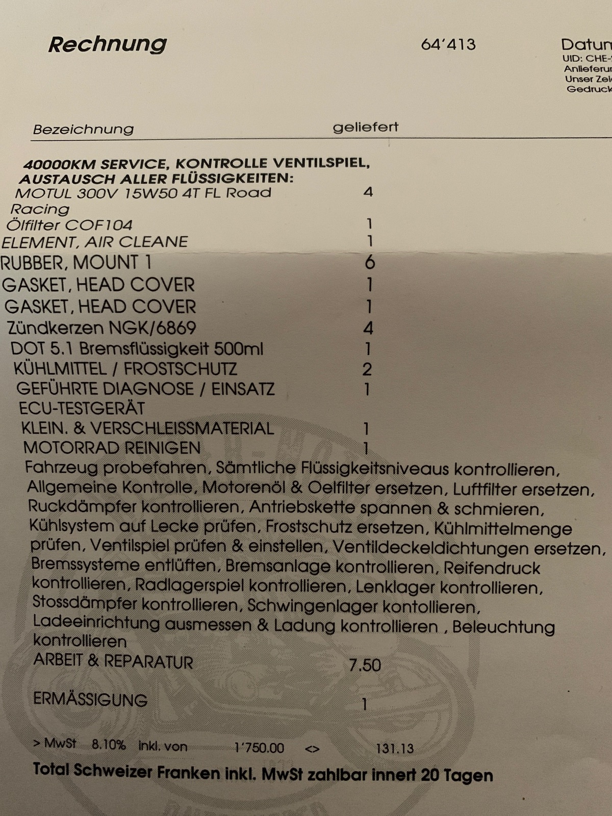 Ja war im Mai da für den 40‘000er Service.