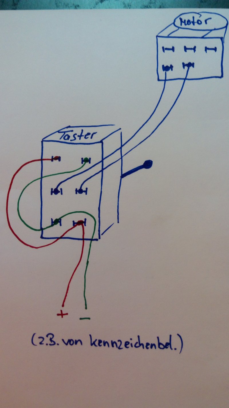 Ihr könnt Euch den Taster/ Schalter auch schenken und kurz 12 Volt auf den Stellmotor geben bis die Klappe ganz auf ist!!!