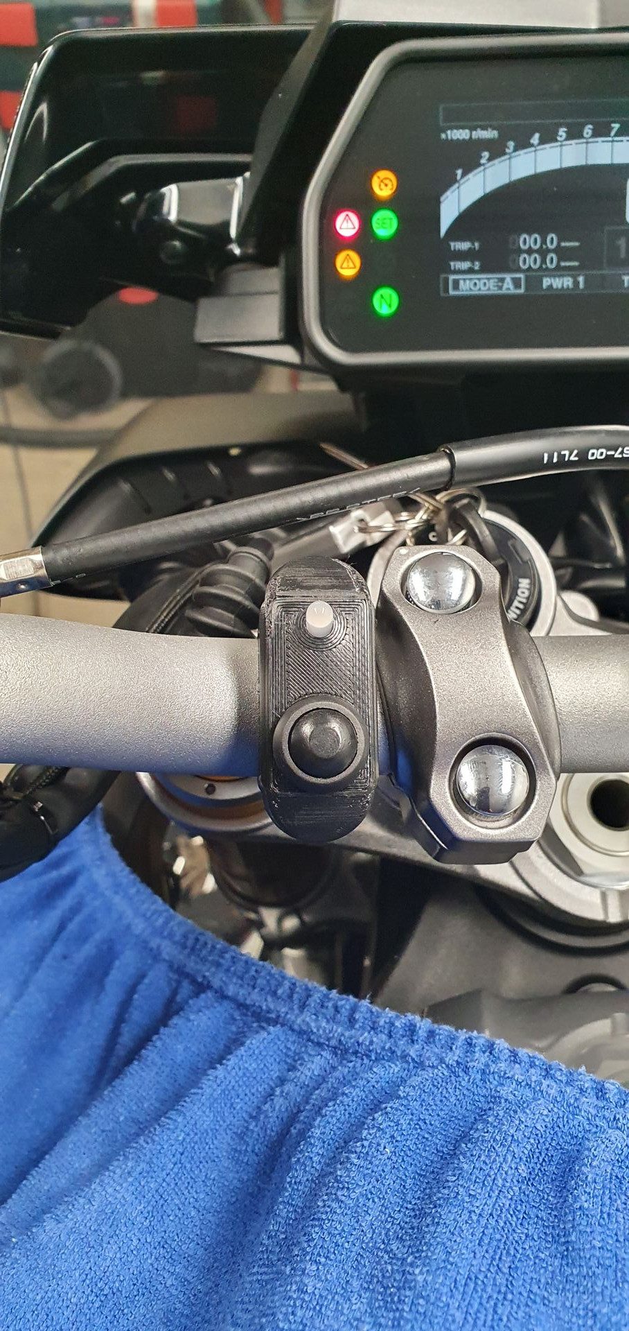 Schaltereinheit ist eigentlich nicht so was ich will aber da die Kupplungsamatur so blöde eng am Lenker ist, gibt es dort keinen Platz und in die originale Schaltereinheit, wollte ich kein Loch bohren. Der Taster braucht leider auch seinen Platz und war das kleinste was ich finden konnte, was wasserdicht ist.