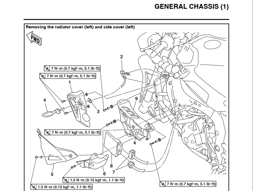 -> Man nehme die seitlichen Kühlerverkleidungen ab, indem man deren Schrauben löst,