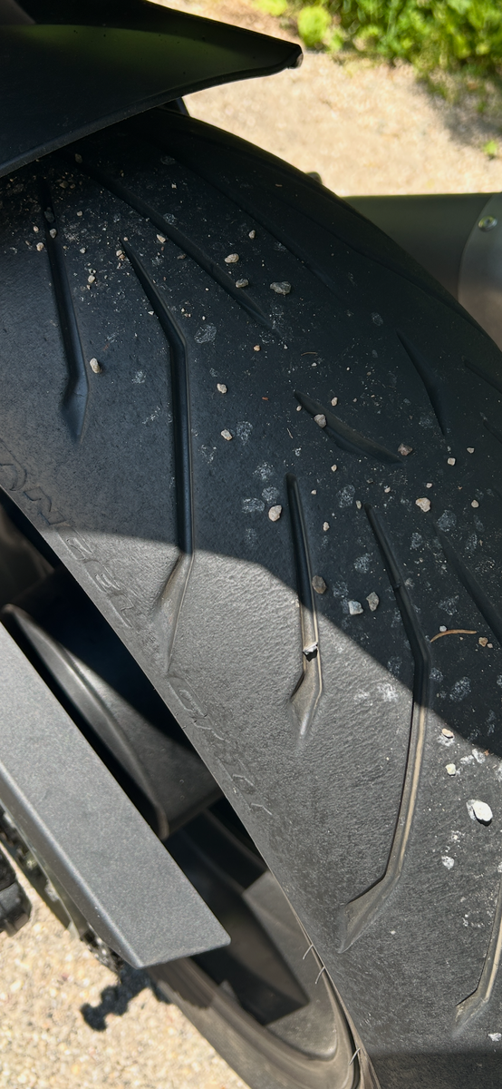 Vermute mal überhitzt. Mit den 5 Sätzen davor hatte ich so eine Problematik nicht. Dass der Reifen zum Schluss die letzten 300-500km abbaut okay, aber in diesem Ausmaß habe ich das noch nicht erlebt.
