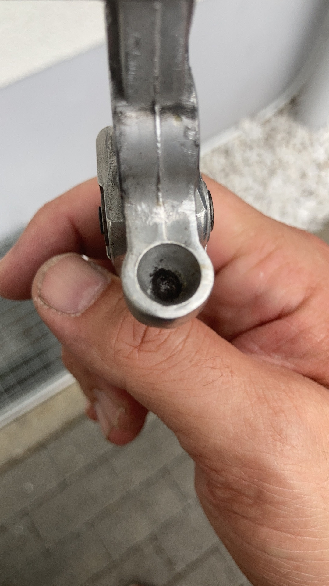 Wenn der Bremszylinderkopf tiefer in den Hebel hineingeht, veränderst du den Zeitpunkt an dem voller Bremsdruck anliegt (später), somit löst dann der Bremslichtschalter auch früher aus. Ich habe ja wie beschrieben festgestellt das die Zylinderaufnahme (siehe bild) bei den Aftermarkethebeln nicht so tief ist wie bei den Originalen. Dadurch bremst du früher stärker, bei gleichbleibendem Auslöspunkt für den Bremslichtschalter - ergo nach verbau von Aftermarkethebeln später.