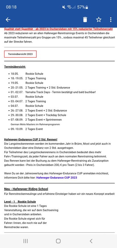 hier mal ein Ausschnitt aus einer eben empfangenen Mail von Hafeneger Renntrainings