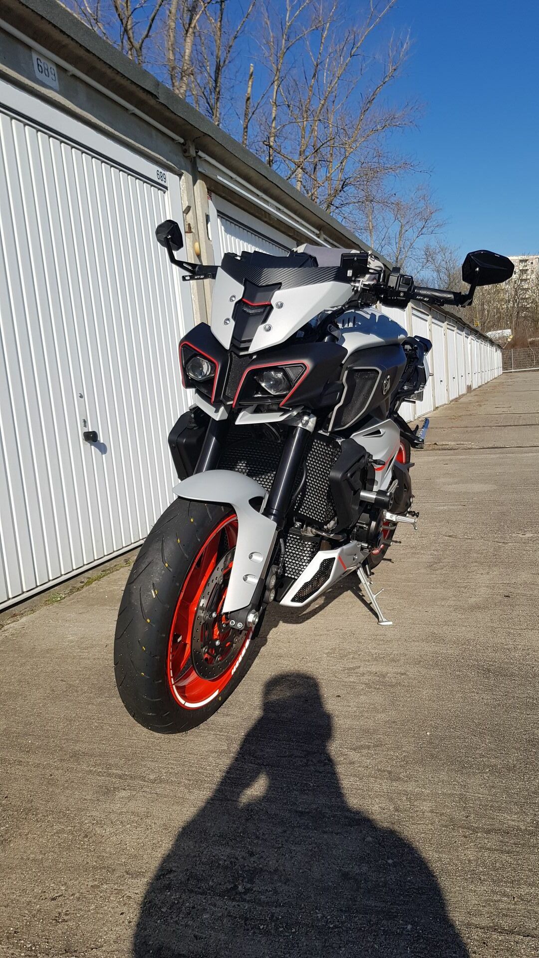 Ich habe den Bugspoiler auch letzte Woche verbaut. Bei mir war die Lieferzeit 4 Monate. Ich mußte einiges nacharbeiten. Eine Schraube war zu kurz. Also neue Schrauben in Silber besorgt. Ich habe das Gitter schwarz lackiert und das dann mit 2K Kleber verklebt.
