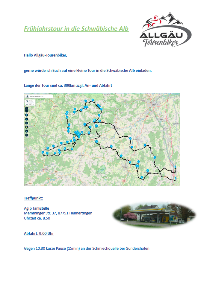 ab und an verirren wir uns aber auch mal in Richtung Schwäbische Alb...... ich hab hier mal eine kleine Tour für den 21.Mai 2023 gebastelt die ich auch ins andere Forum gestellt habe. Ist sozusagen eine Tour für jedermann - je nach Teilnehmerzahl ne flotte und ne gemütliche Truppe - also eher ein schöner Sonntagsausflug