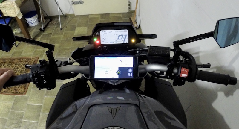 Das ist alles eine Frage der Übung. Natürlich ist es mit der MT-10 schwieriger, weil diese keine Soziusgriffe hat. Meine vorherige Maschine hatte diese. Wenn sie Griffe hätte wäre es ein fester Handgriff daran und fertig.